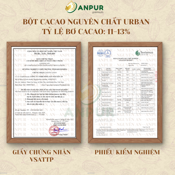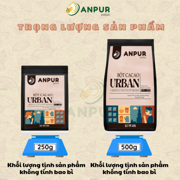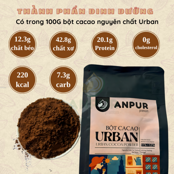 – Bột cacao nguyên chất Urban là bột mịn hoà tan hoàn toàn (nên pha bột cacao với nước có nhiệt độ tầm 70 độ C để có chất lượng hoà tan tốt nhất).