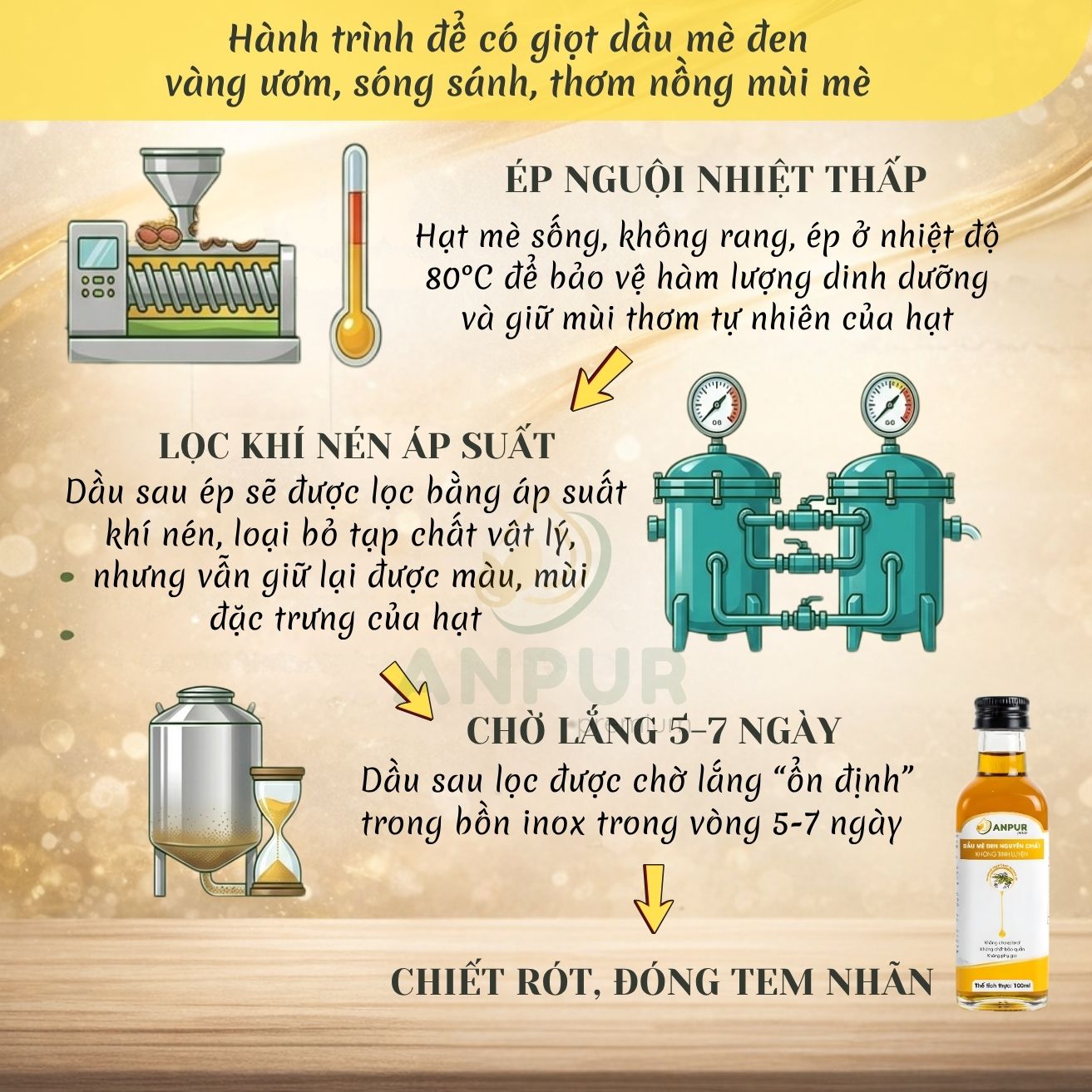 Quy trình sản xuất dầu ép nguội mè đen tại xưởng ANPUR
