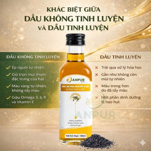 ✅ Đặc điểm của dầu mè đen nguyên chất, không tinh luyện ANPUR