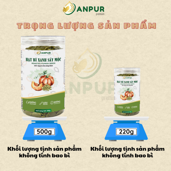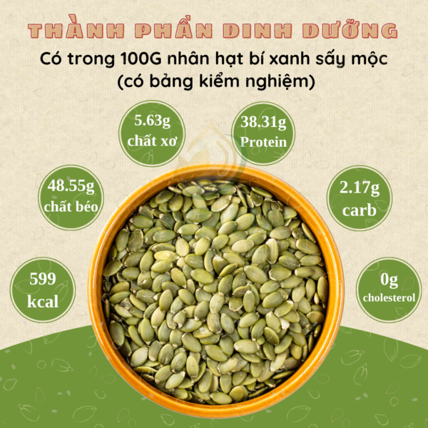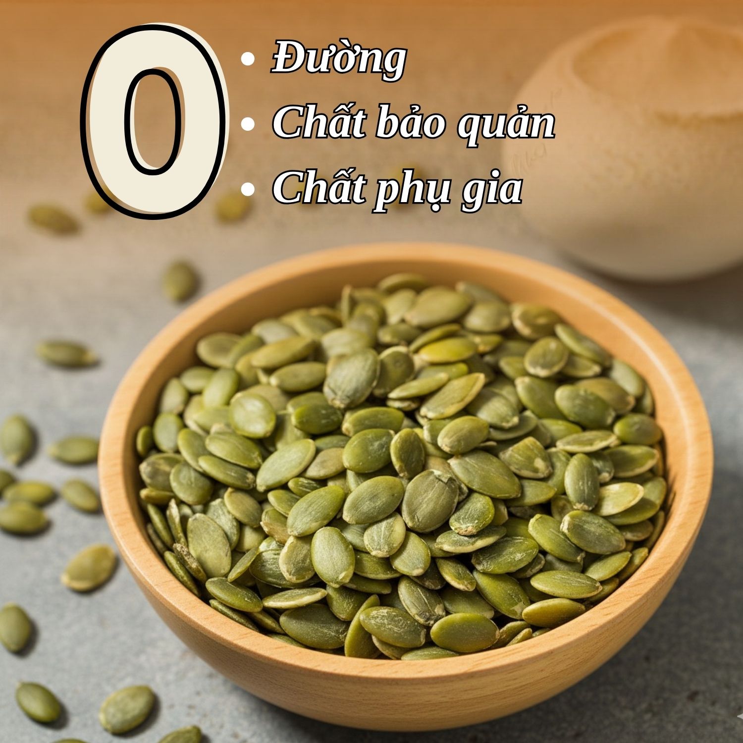 – Thành phần: 100% Hạt bí xanh sấy mộc. Không đường, không phụ gia, không chất bảo quản.