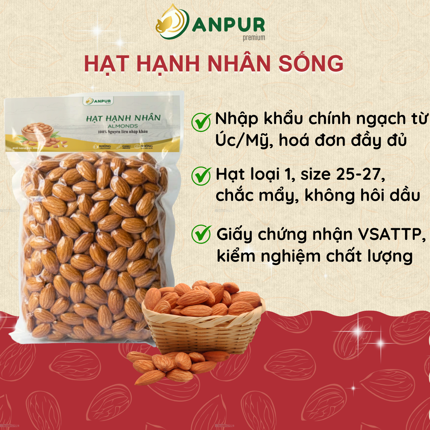 Thành phần: 100% hạt hạnh nhân.
