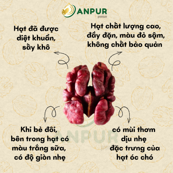 Nhân óc chó đỏ ANPUR được nhập khẩu chính ngạch từ Mỹ, đã được diệt khuẩn và sấy khô.