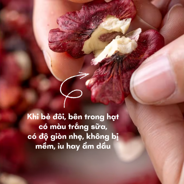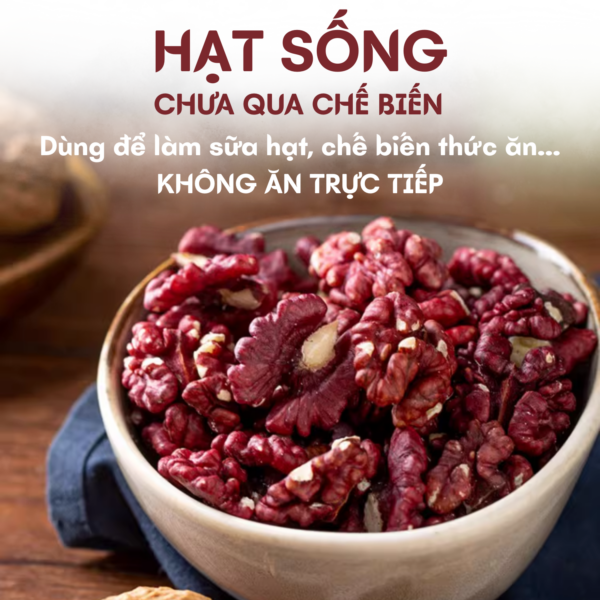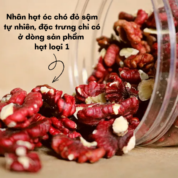 – Thành phần: 100% nhân hạt óc chó đỏ, không nấm mốc, không chất bảo quản.